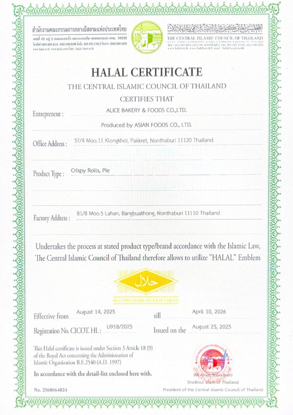 Alice Bakery & Foods co. ltd is a Crispy pastries manufacturer in Thailand was established in 2021. We determine to be a leader of manufacturer and distributor Crispy pastries, providing the best quality products with the finest raw materials and high quality of production process We produce the best quality products to meet consumer needs with innovation modern technology and safety to our valued customer.