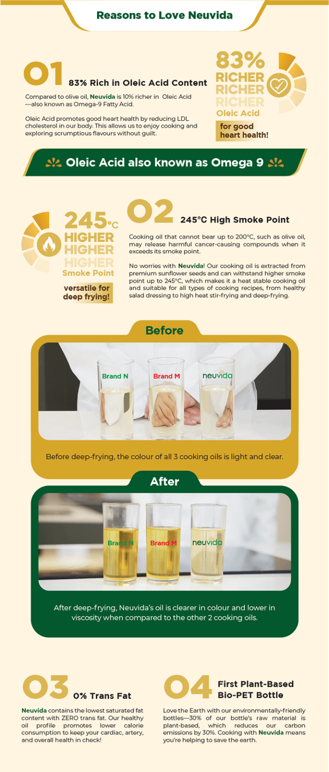 💥NeuVida Cooking Oil has HIGHER Omega 9 Oleic Acid (83%) than most oil including Olive Oil.